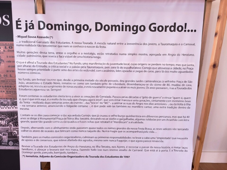 Aliás, na altura em que dedilho frases no teclado, lá fora ouço um samba brasileiro em alto e bom som. É o carro dos “rapazes” da Tourada dos Estudantes, uma coisa tão simples, mas que há já algum tempo me provoca um arrepio de saudades e orgulho. Será um sinal de que, com a idade, vamos ficando tontos e saudosistas? Creio que não.